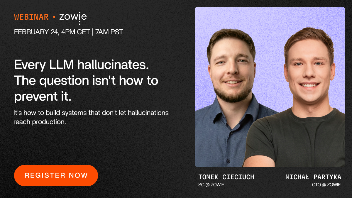 Your customers simply say what they need. Zowie’s AI Agents get it done—resolving issues, placing orders, managing refunds, and executing even your most complex processes. No friction. No menus. Just intelligent conversations that feel human—and perform better.”