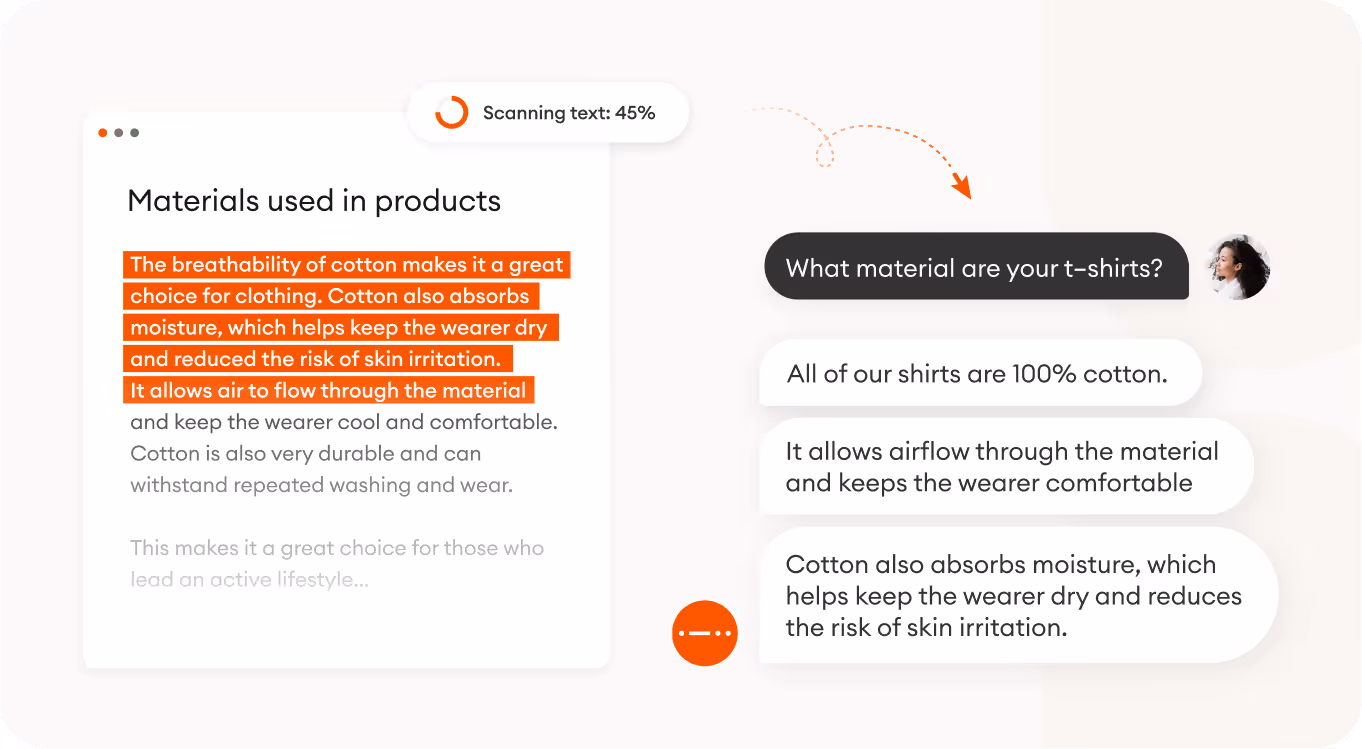 Users prefer quick, actionable pieces of information. If they have to read an essay to get their answer, they’re likely not getting the best customer experience. Thankfully, AI technology offers another quick fix that enhances conversational flow.