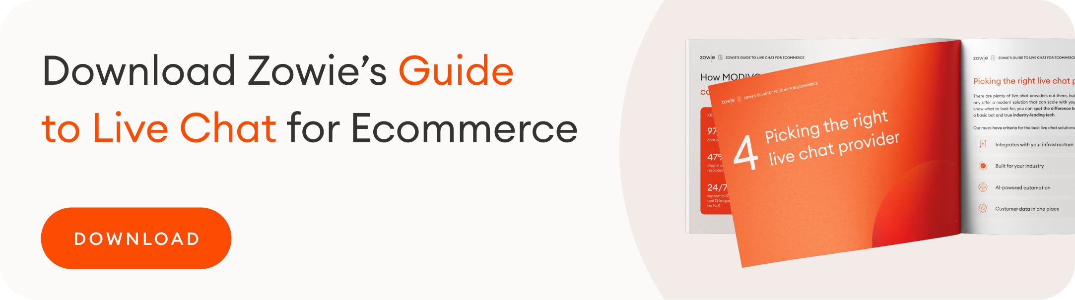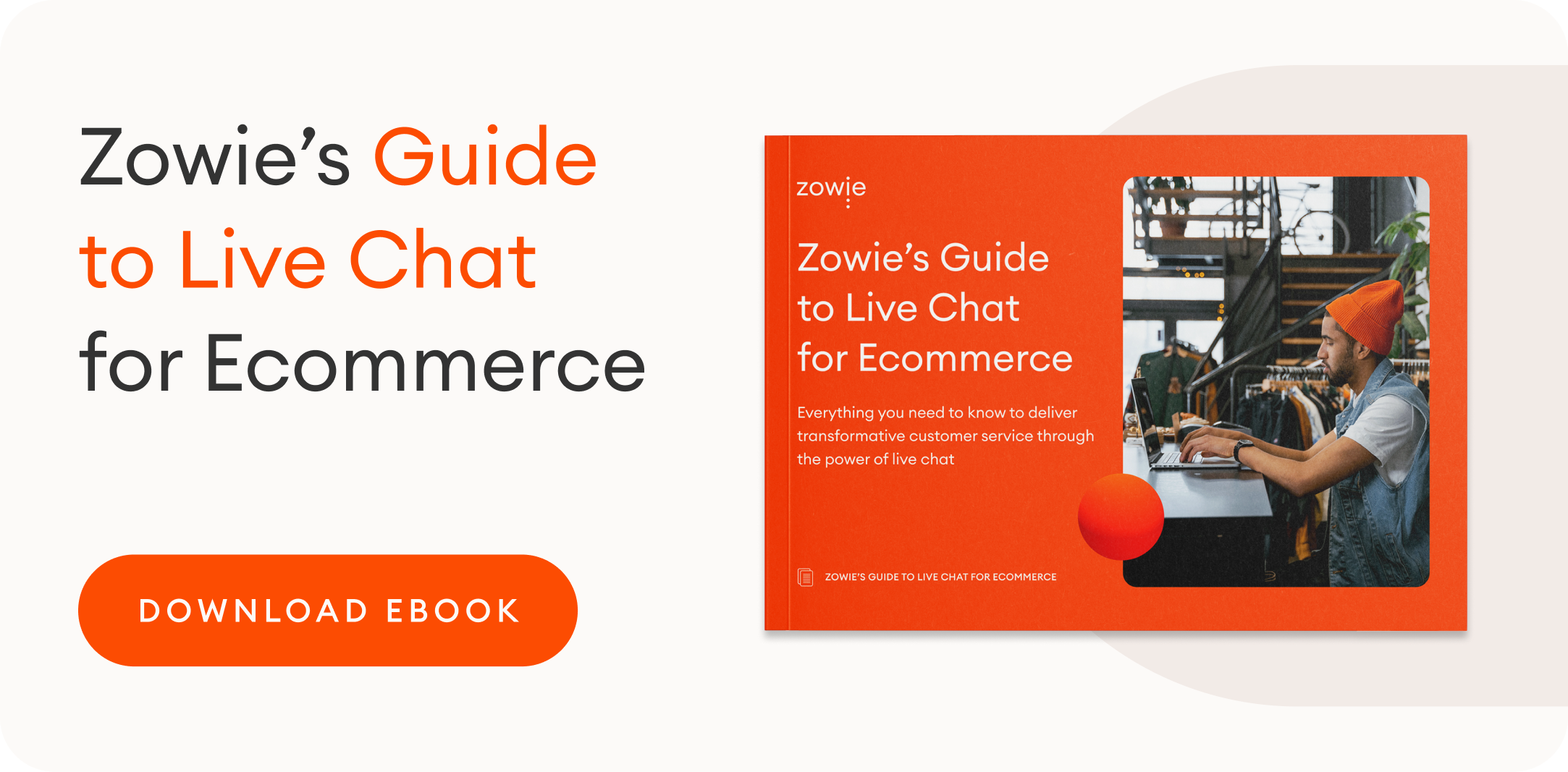To learn more about all the benefits live chat has to offer ecommerce companies, along with how to pick the right chat provider and how to implement your solution, download Zowie’s Guide to Live Chat for Ecommerce today.