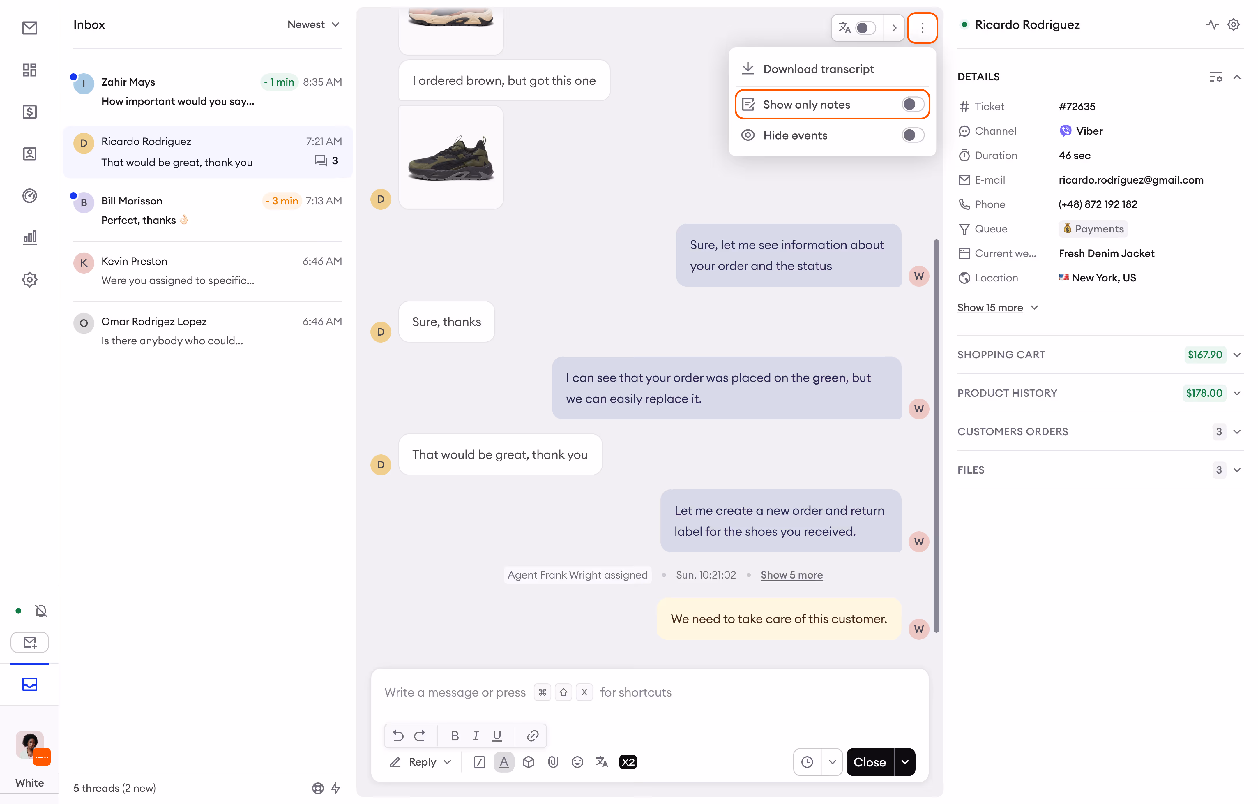 - Add internal notes from the Composer and seamlessly access them from the conversation view.