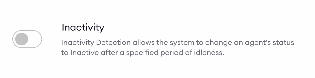 Supervisors are able to set a specified time after which idle agents are automatically designated as inactive. Inactive agents may still appear active for a variety of common reasons, such as loss of internet connectivity. Inactivity Detection ensures unavailable agents no longer appear as active.